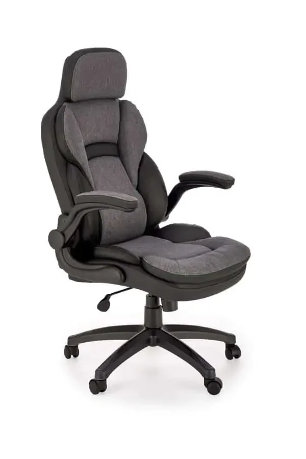 Valerio kombinuje černou eko-kůži a šedou melírovanou látku, čímž vzniká moderní, elegantní křeslo pro každé pracovní prostředí. Díky ergonomickému tvarování sedáku a opěrky poskytuje skvělou oporu a komfort po celý den. Rozměry 67 × 69 × 120–128 cm, nosnost až 120 kg, hloubka sedu 49 cm a šířka sedu 50 cm; výška sedu se dá nastavit v rozmezí 49–57 cm a výška područek 66–76 cm. Područky jsou čalouněné a odklápěcí; mechanika je Tilt a kolečka jsou určena pro tvrdé povrchy. Dodáváno v demontu. Tato stylová i funkční židle je ideální volbou pro každou kancelář, ať už pracujete v kanceláři, nebo doma.