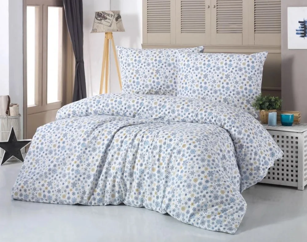 Parametry produktu Vánoční bavlněné povlečení Vločky modrobéžové 140x200/70x90 cm