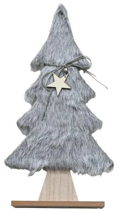 Tento elegantní vánoční stromeček je vytvořený z MDF dřeva a zdobený umělou kožešinou, která dodá vašemu interiéru útulnou vánoční atmosféru. Na výběr máte z několika barev: tmavě šedá, světle šedá a hnědá.
