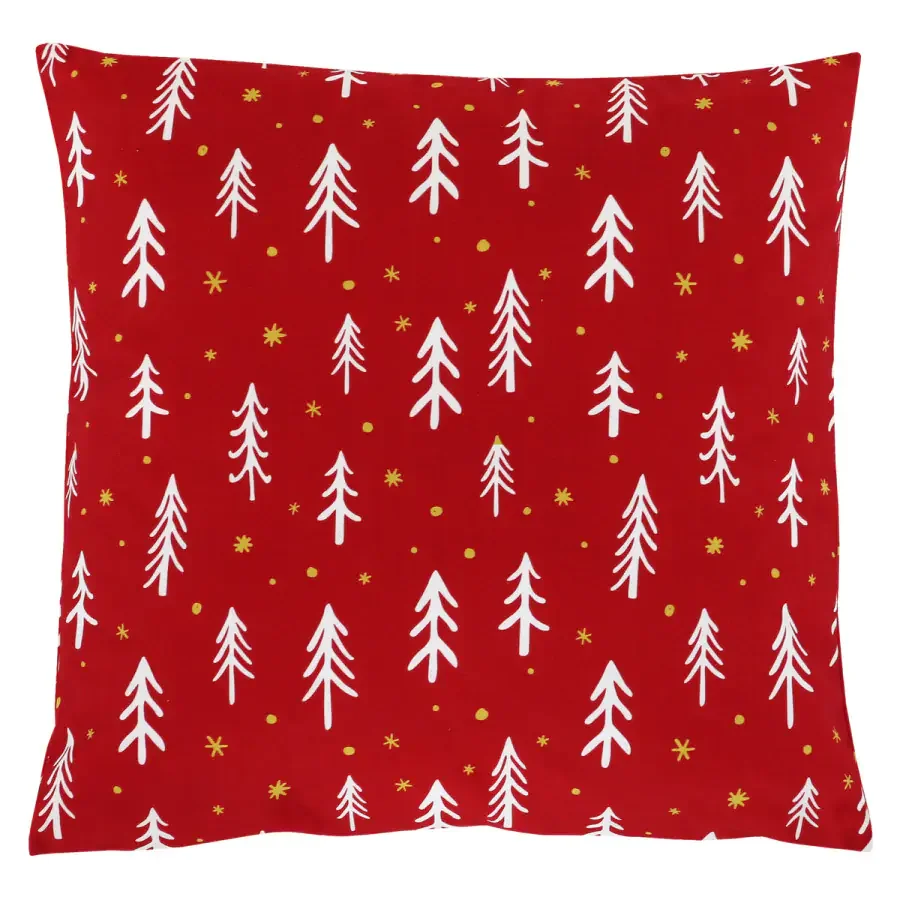 Na červeném podkladu se vyjímají bílé stromečky a žluté hvězdy, čímž vzniká stylový vánoční motiv. Tento vánoční polštář nejenže ozdobí váš domov, ale také poskytne pohodlí při odpočinku. Díky kvalitní tkanině se snadno udržuje a vydrží opakované sezóny svátečního nasazení.