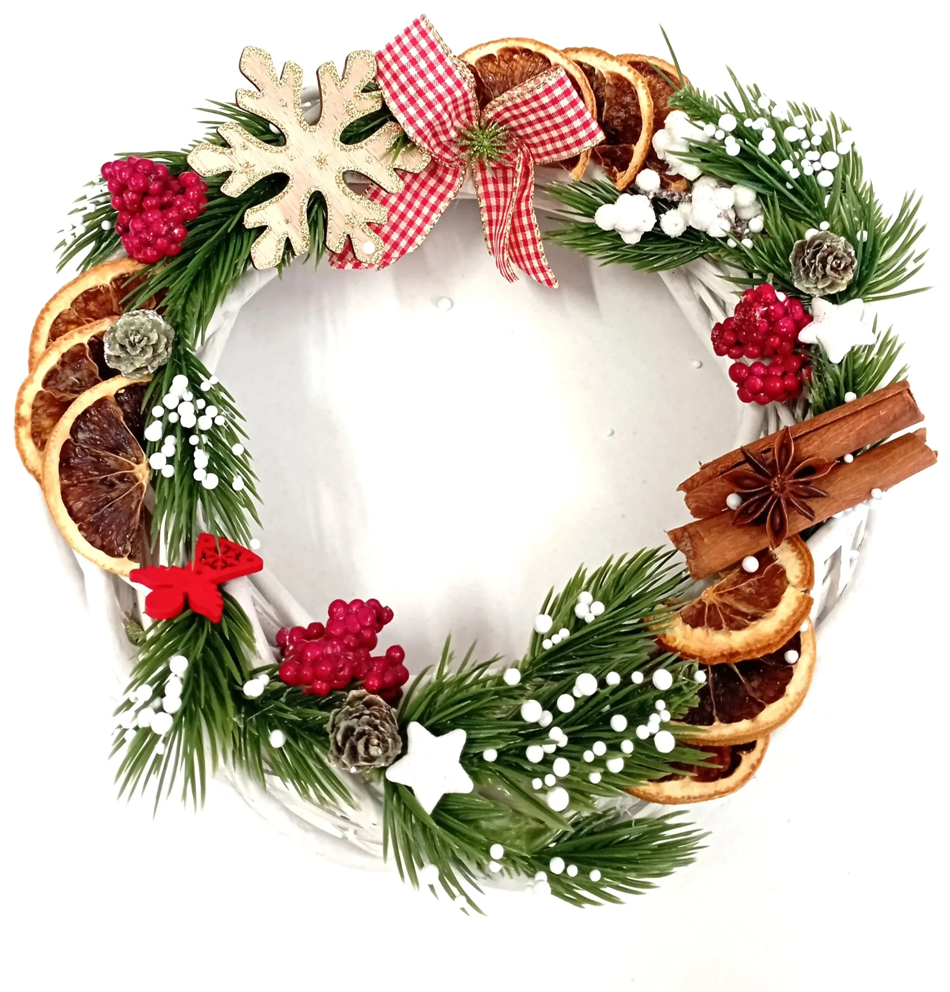 Parametry produktu Vánoční věnec na dveře s skořicí a sušenými pomeranči