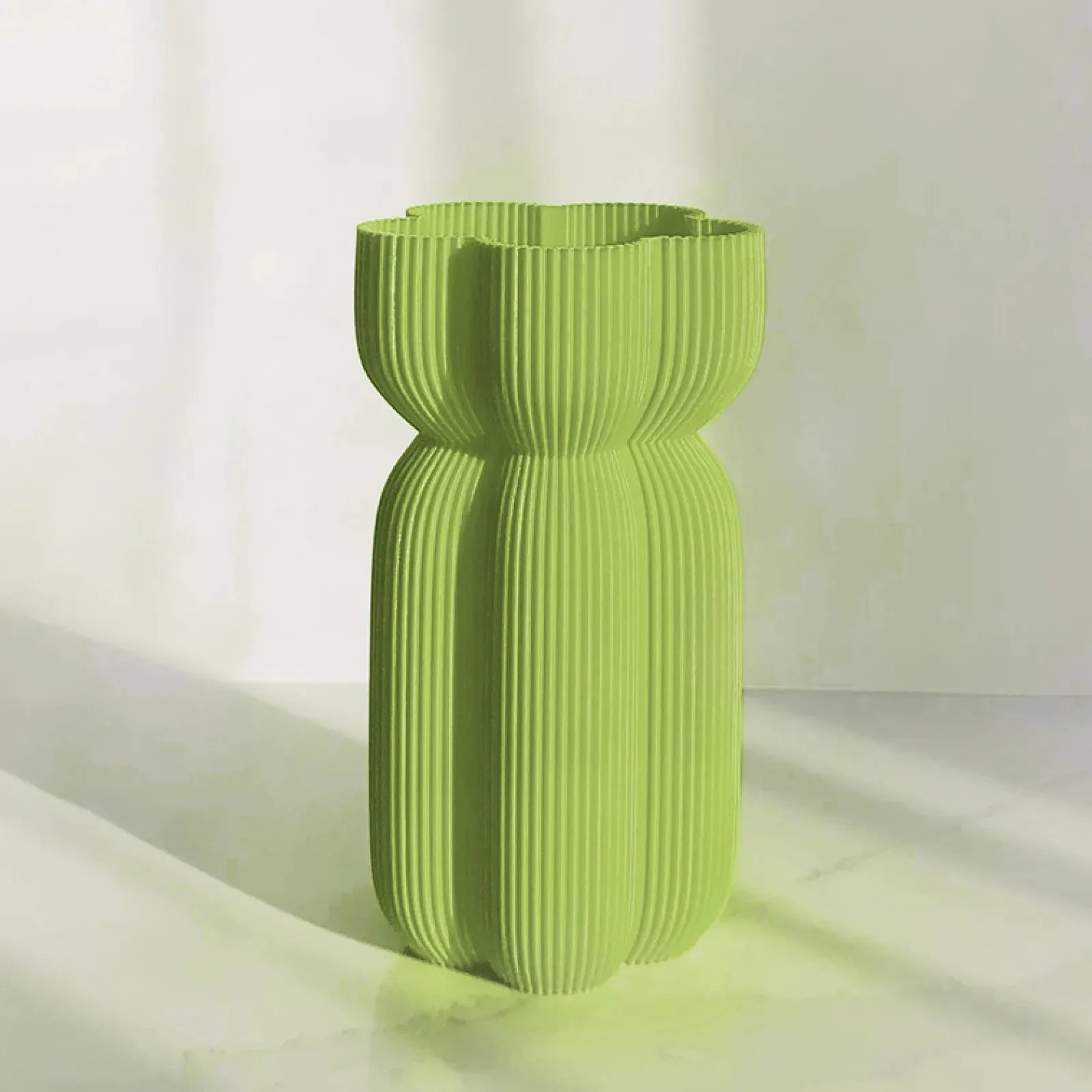 Obohaťte svůj interiér originálním designem s vázou Akonia v moderní metalické zelené barvě. Vyrobena technologií 3D tisku, která zaručuje precizní detaily a jedinečný tvar, tato váza je ideální pro prezentaci čerstvých nebo suchých květin.