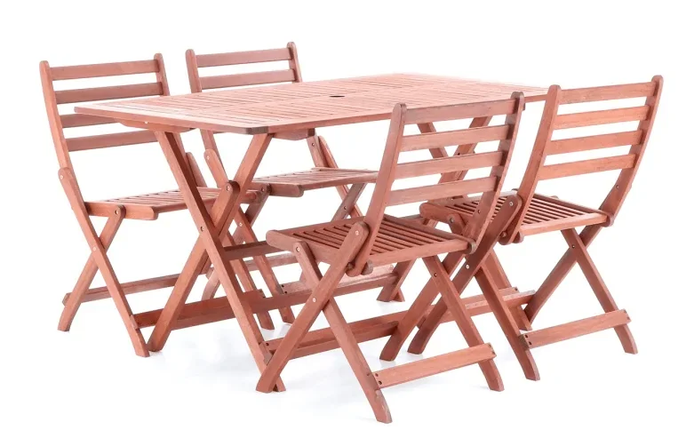 Bezpečnostní upozornění: pro vlhké prostředí bez impregnace není určena. Povrch je ošetřen bezbarvým teakovým olejem, přičemž materiál meranti dodává jedinečnou kresbu dřeva, která se u každého kusu liší. Dřevo meranti je chráněno před vysycháním, vodou a škůdci díky aplikaci teakového oleje. Navíc díky skládacímu designu snadno uskladníte nábytek a uvolníte prostor pro další aktivity.