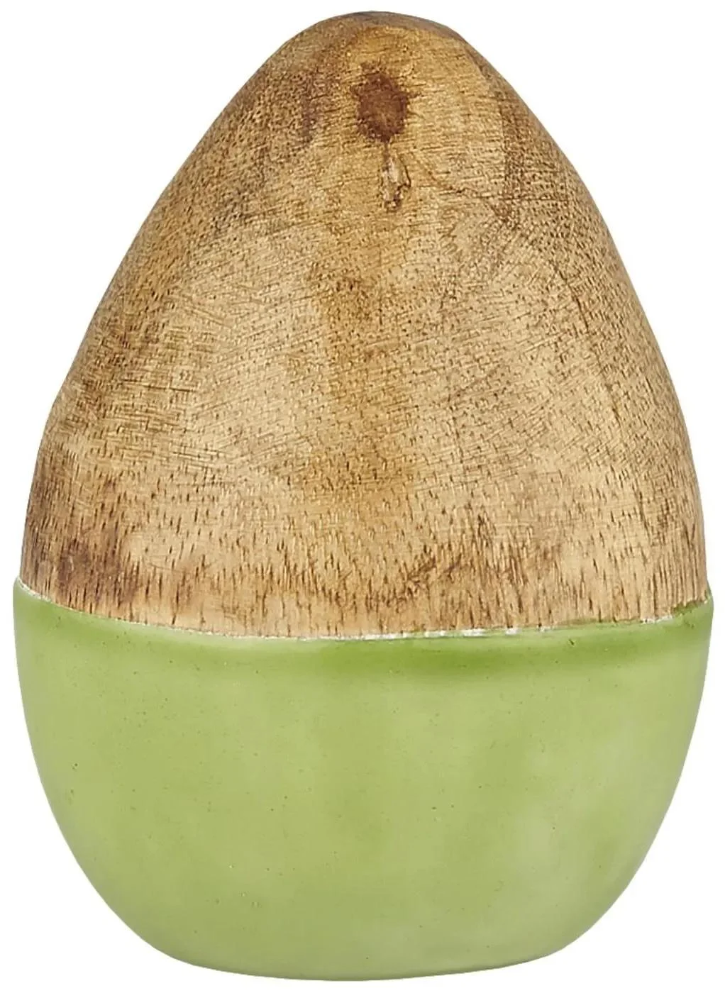 Tento originální velikonoční doplněk je vyroben ze stylového mangového dřeva a kombinuje přírodní zelené a hnědé odstíny. Ideální pro oživení vašeho jarního interiéru či venkovní výzdoby, přičemž jeho kompaktní rozměry (průměr 5,5 cm a výška 7,5 cm) umožňují snadné umístění na poličky či větší dekorativní aranžmá.
