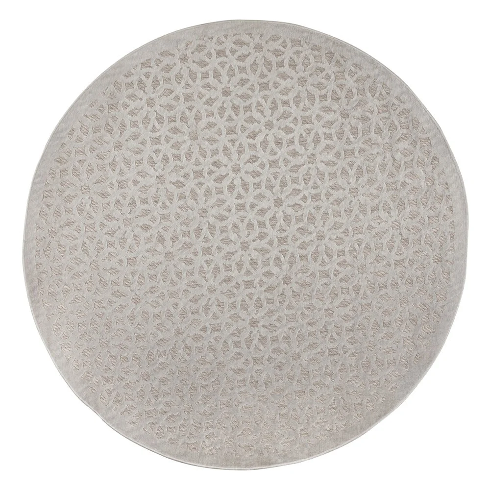 Argento je elegantní venkovní koberec s kulatým tvarem o průměru 160 cm, který je ideální pro vytvoření příjemné atmosféry na vaší terase nebo zahradě. Tento koberec je nejen dekorativní, ale také odolný vůči povětrnostním podmínkám, což zajišťuje dlouhou životnost i při venkovním použití.