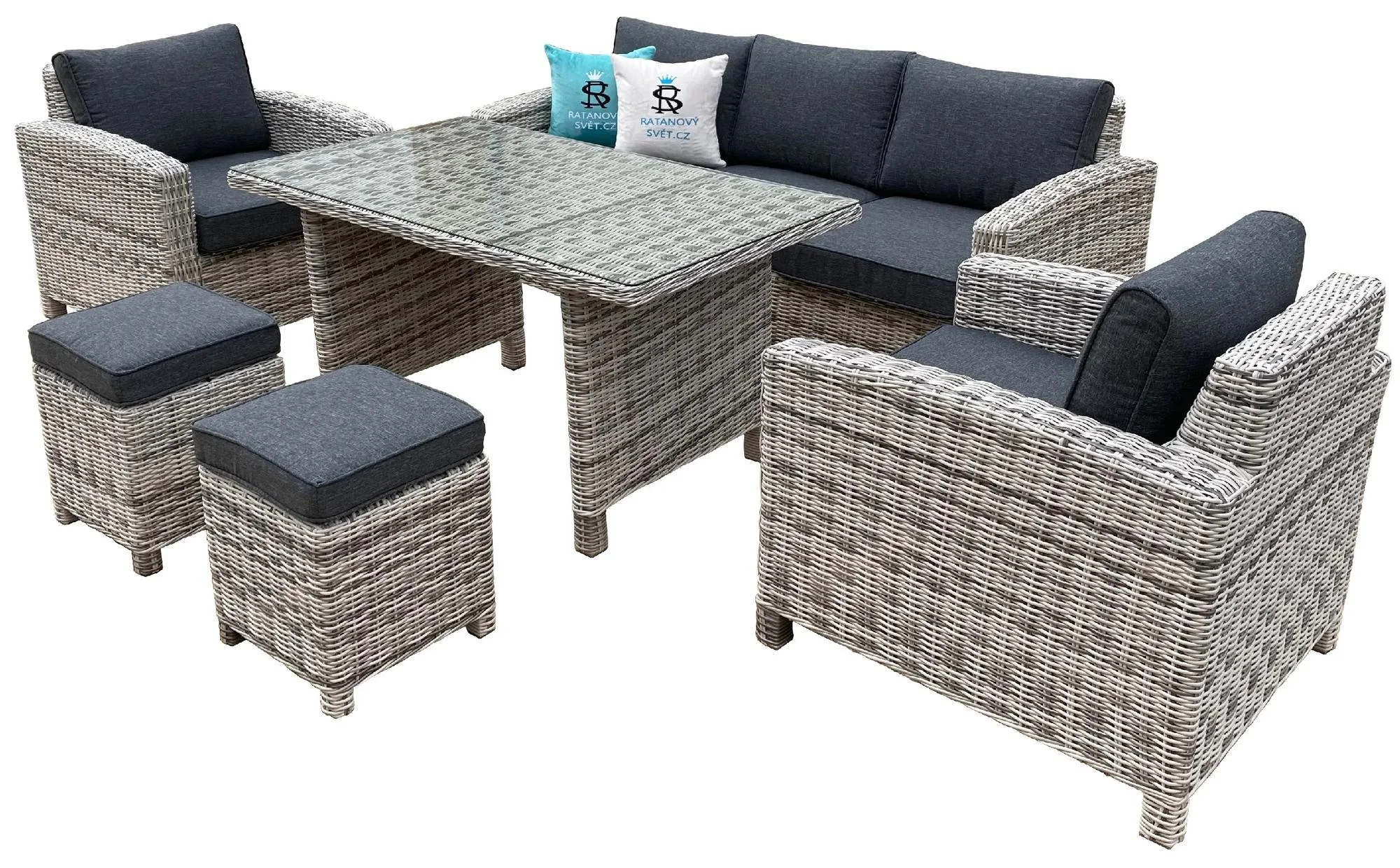Parametry produktu Venkovní posezení REBECCA z umělého ratanu, světle šedé