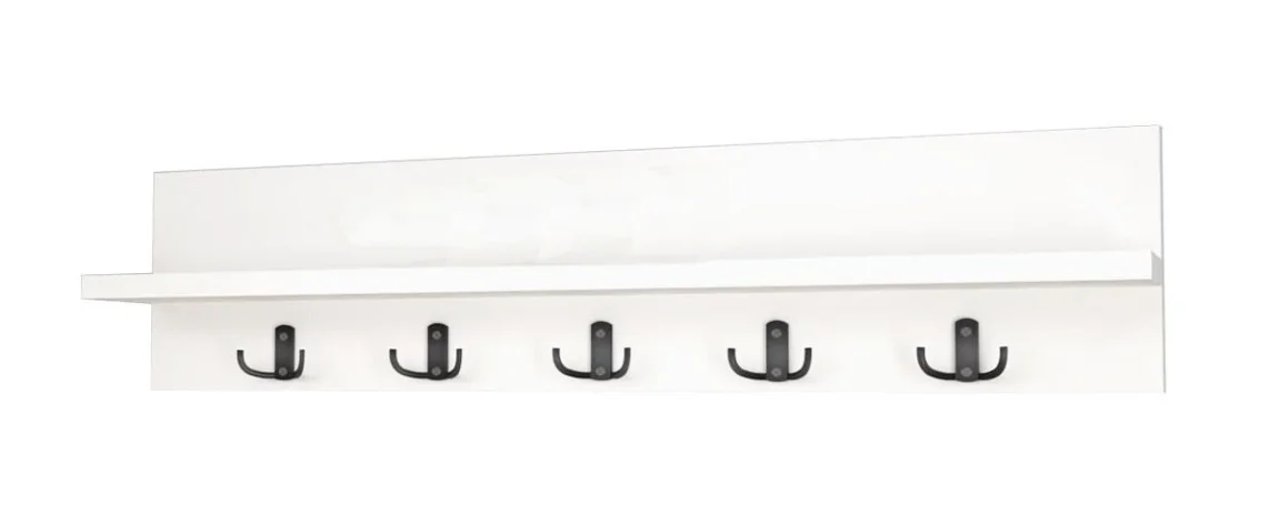 Věšák s praktickou policí v bílé barvě kombinuje jednoduchý design s užitečným úložným prostorem. Materiál: lamino s hladkým povrchem, který je odolný a snadno se čistí. Rozměry (šxvxh): 80 x 18 x 11 cm zaručují dostatek místa na kabát, čepice a drobnosti na polici.