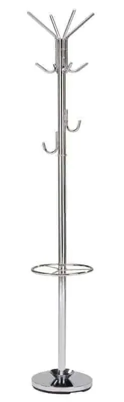 Praktický kovový věšák s elegantním, moderním designem se hodí do každého interiéru. Poskytuje dostatek odkládacího prostoru pro oděvy, pokrývky hlavy i deštníky, a pomáhá udržet pořádek. Povrch s chromovým leskem zaručuje dlouhou životnost a snadnou údržbu. Využijete ho nejen v předsíni, ale také v ložnici, dětském pokoji, čekárně či kanceláři, a díky univerzálnímu stylu skvěle zapadne do různých prostor.