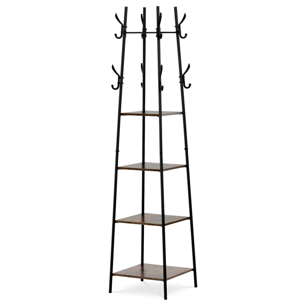 Věšák se 4 policemi spojuje praktické možnosti s industriálním stylem, a tak se stane ideálním doplňkem do předsíně i ložnice. Korpus s deskou v dekoru starého dřeva a černý kovový rám dodávají interiéru moderní, lehce surový vzhled.