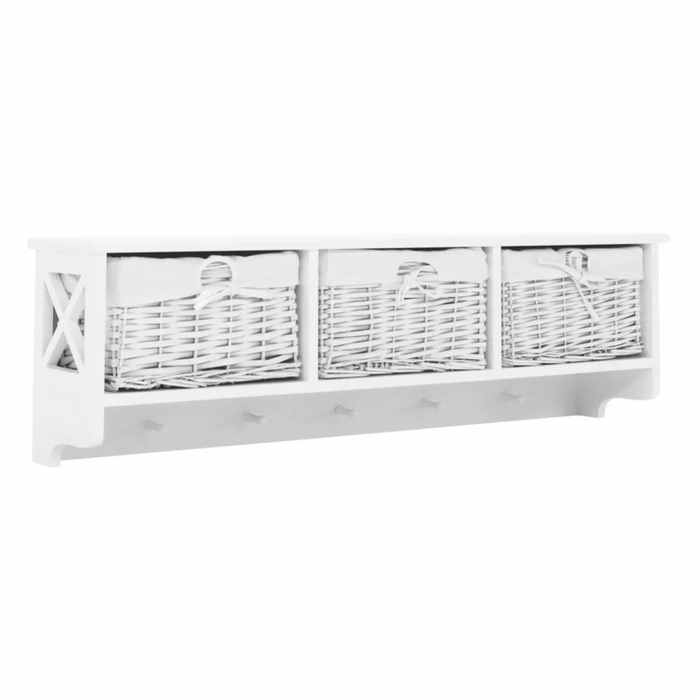 Věšák s pevnou konstrukcí kombinuje stabilní rám s praktickými třemi proutěnými koši, ideální pro chodbu i ložnici. Zhotovený z dřeva a proutí v bílé barvě působí svěže a nadčasově.