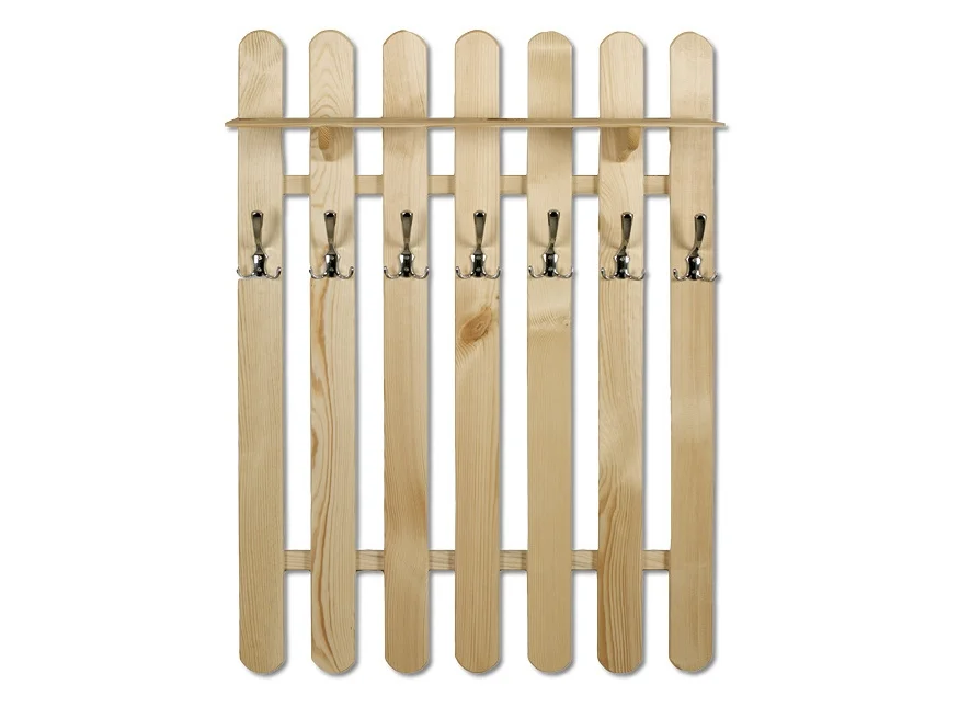 Věšák THOR z masivní borovice nabízí pevnost a nadčasový vzhled pro každou předsíň i šatnu. Rozměry 81 cm šířky, 102 cm výšky a 22 cm hloubky poskytují dostatek místa pro kabáty, svetry a doplňky.