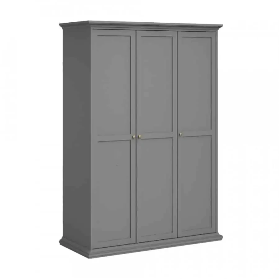 Sektorový systém PARIS v jemném provedení s provensálským nádechem zaujme svou elegancí a šedým provedením, které skvěle ladí s moderními i tradičními interiéry. Skříň třídveřová poskytuje dostatek úložného prostoru; její konstrukce kombinuje laminovanou dřevotřísku s MDF lištami pro dekorativní efekt. Věšáková část nabízí prostor na oděvy a součástí je i jedna police, zatímco policová část obsahuje pět poliček, takže si snadno uspořádáte sezónní věci i doplňky. Dodáváno v demontu, což usnadní dopravu i samotnou montáž. Nosnosti: police v poličkové sekci až 20 kg, police ve věšákové části až 15 kg, věšáková tyč až 12 kg. Tloušťka materiálu činí 18 mm. Do vašeho domova přinese praktické řešení skladování a stylovou vizuální stránku, která se snadno sladí s dalšími kusy nábytku.