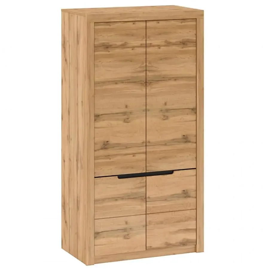Věšáková skříň TORONTA F kombinuje pevný korpus z laminované dřevotřísky a dvířka z MDF, což zajišťuje dlouhou životnost a snadnou údržbu. Uvnitř najdete věšákovou tyč a v dolní části jednu polici pro uložení oblečení, doplňků i sezonních potřeb. Provedení v odstínu dub wotan tak přináší teplý a nadčasový vzhled do každé ložnice či pokoje. Skříň je dodávána v demontu, což usnadňuje rychlou montáž a přepravu. Tloušťka korpusu činí 16 mm, díky čemuž je konstrukce pevná a stabilní.
