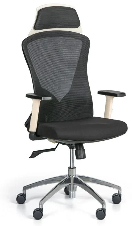 Díky synchronní mechanice se sklonem, která se přizpůsobuje pohybu vašeho těla, si můžete snadno upravit posez podle svých potřeb. Nastavitelné plastové područky umožňují optimální oporu rukou a krku, zatímco výškově nastavitelné opěrky hlavy poskytují extra komfort a podporu krční páteře. Široký sedák o šířce 53 cm a hloubce 51 cm spolu s opěrákem vysokým 59 cm vytvářejí stabilní a pohodlné sezení. Pevný hliníkový kříž odolný do 150 kg spolu s kolečky vhodnými na tvrdé podlahy zaručují dlouhou životnost a snadnou manipulaci. Tato židle je skvělým doplňkem do každé kanceláře či domácí pracovny, kde oceníte její ergonomické vlastnosti a moderní design.