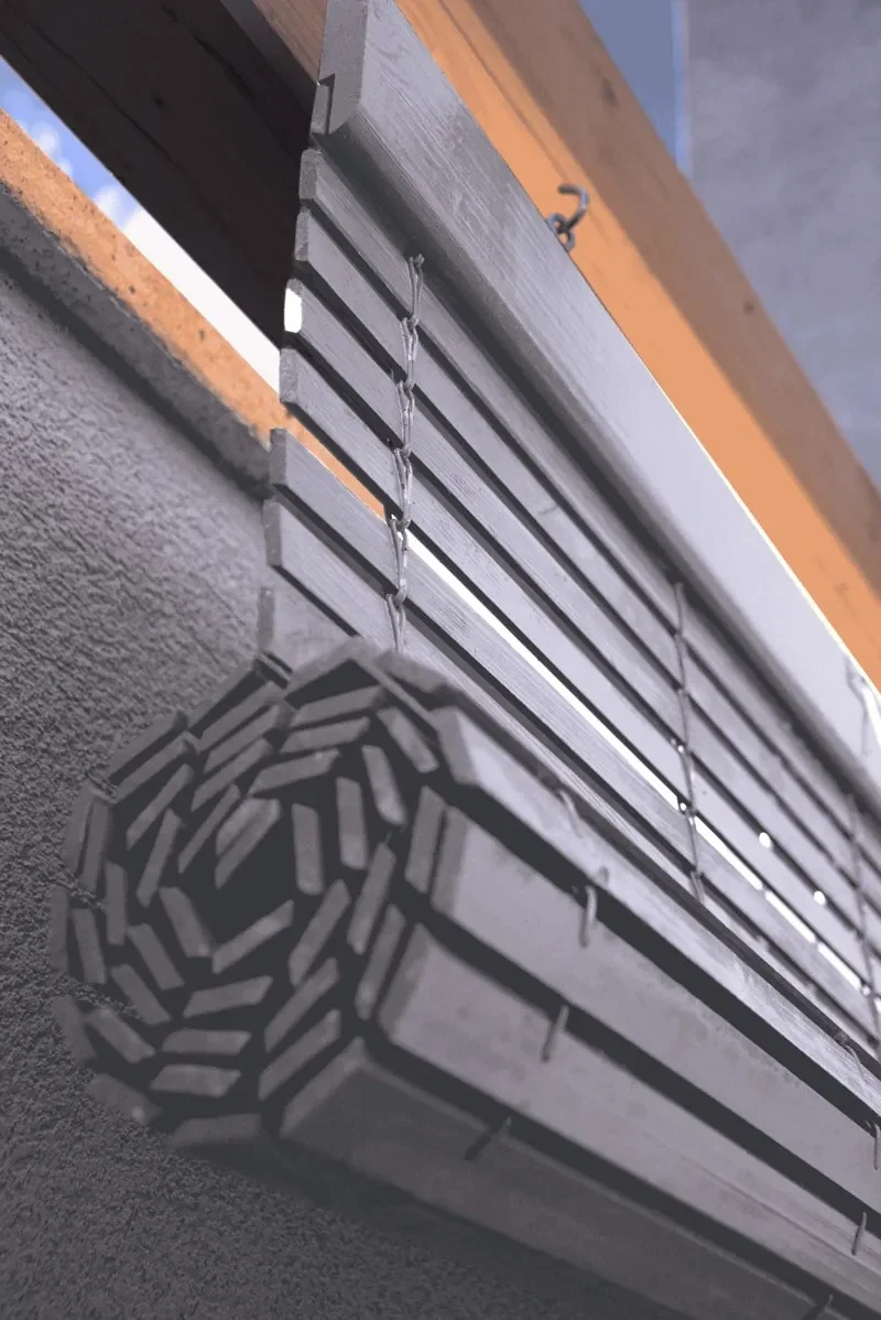 Objevte stylové a odolné dřevěné rolety v elegantní šedé barvě, ideální pro venkovní prostory jako pergoly, altány či balkóny. Vyrobené z masivního borovicového dřeva, které odolává povětrnostním vlivům, včetně deště a větru.