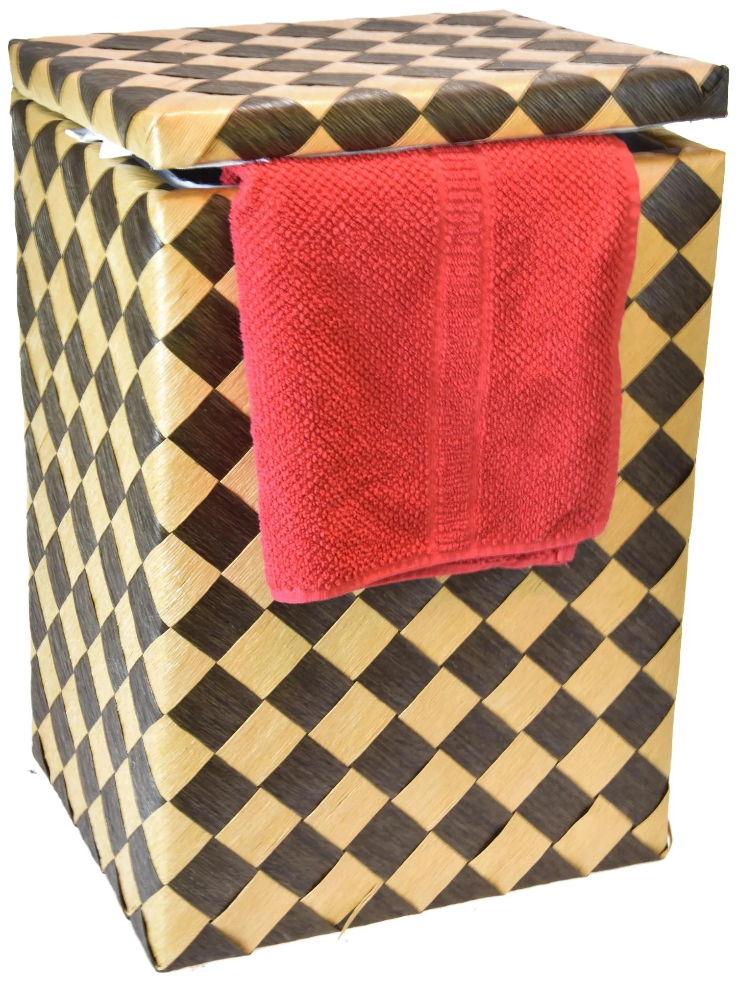 Stylový a praktický koš na špinavé prádlo od značky Vingo je ideální volbou pro každou domácnost. Jeho unikátní dvoubarevný výplet z provázků v elegantní hnědé barvě s čtvercovým vzorem dodává prostoru moderní vzhled.