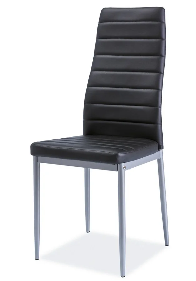 Jednoduše stylová jídelní židle s čalouněným sedákem a prodlouženým opěradlem pro pohodlné sezení. Kovová konstrukce z hliníku zajišťuje pevnost a moderní vzhled, zatímco černá ekokůže potahuje sedák a opěrák.