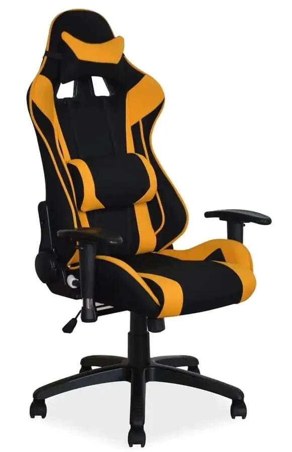 Moderní otáčecí kancelářské křeslo v současném designu nabízí pohodlné sezení díky možnosti nastavení výšky sedáku. Povrch čalounění tvoří látka v kombinaci žluté a černé, která dodává pracovišti svěží vzhled.