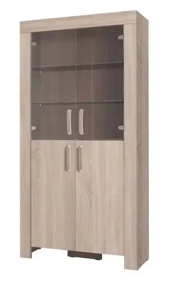 Vitrína Cezanne R3 v provedení Sonoma kombinuje prosklené a plné dveře z kvalitního lamina, díky čemuž působí moderně a dlouhodobě odolně. Nabízí dostatek úložného prostoru pro vše potřebné — od dekorací po dokumenty.