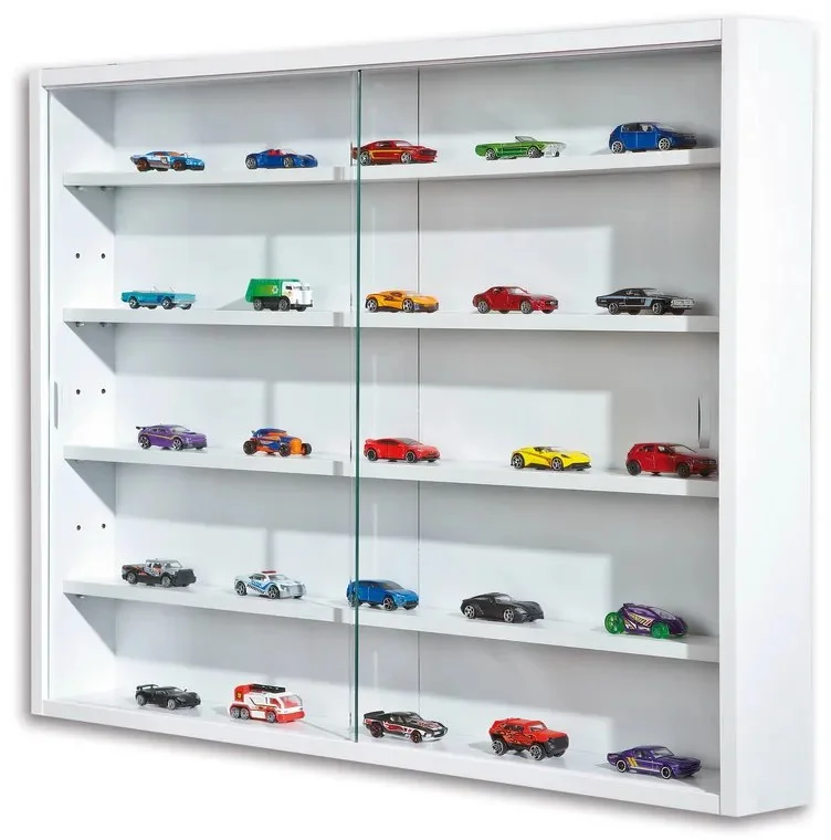Čtyři nastavitelné police umožňují flexibilní uspořádání podle vašich potřeb, přičemž je chrání bezpečnostní posuvná skla s ergonomickými úchyty. Součástí balení je také montážní příslušenství pro upevnění na zeď, což zvyšuje stabilitu a bezpečnost. Vitrína je navržena tak, aby odolávala poškrábání, promáčknutí i znečištění, což prodlužuje její životnost. Doporučujeme ji jako praktický a stylový doplněk pro organizaci vašeho prostoru, který se hodí do každé místnosti. Rozměry: 80 cm šířka, 60 cm výška, 9,5 cm hloubka, s policemi s hloubkou 6,6 cm. Váží pouhých 11 kg a je dodávána v demontu.