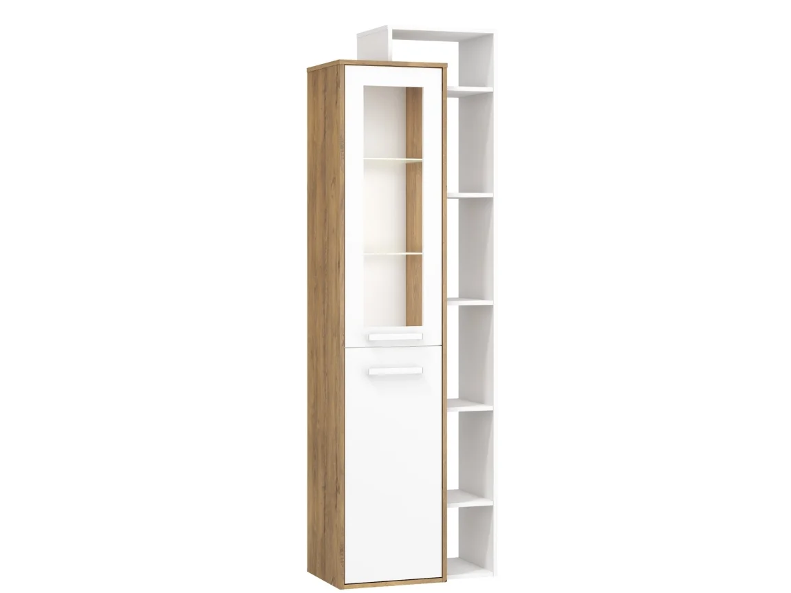 Vitrína Dorinda typ 1 kombinuje elegantní vzhled v odstínech dub burgundský a bílá s praktickým proskleným řešením pro vystavování předmětů. Rozměry 64 x 203 x 41 cm poskytují dostatek prostoru pro organizaci i prezentaci vašich věcí a díky provedení jako pravá se hodí do mnoha interiérů.