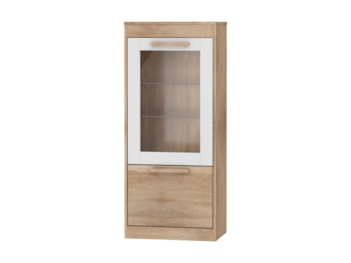 Vyráběná z LTD desky s ABS hranami a skleněnými dvířky působí pevně a elegantně. Dvířka mají tiché dovírání a uvnitř jsou skleněné police pro přehlednou prezentaci předmětů. Dodávána v demontu a se pětiletou zárukou, což zajišťuje dlouhodobou spolehlivost. Díky kombinaci dekoru a praktických prvků se skvěle hodí pro vystavení knih, dekorací i skleněných doplňků, čímž prostor působí uklizeně a stylově.