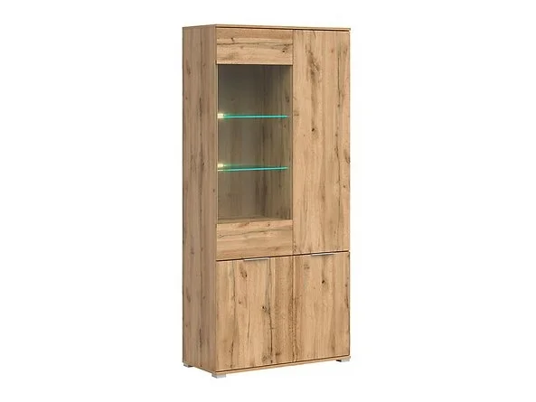 Vitrína MOCHO 1W3D nabízí vertikální rozdělení na dvě části. Levá část je tvořena prosklenými policemi, kde díky skleněným policím vyniknou vaše dekorace, fotografie či knihy. V pravé části najdete pět pevných polic pro uspořádání předmětů.