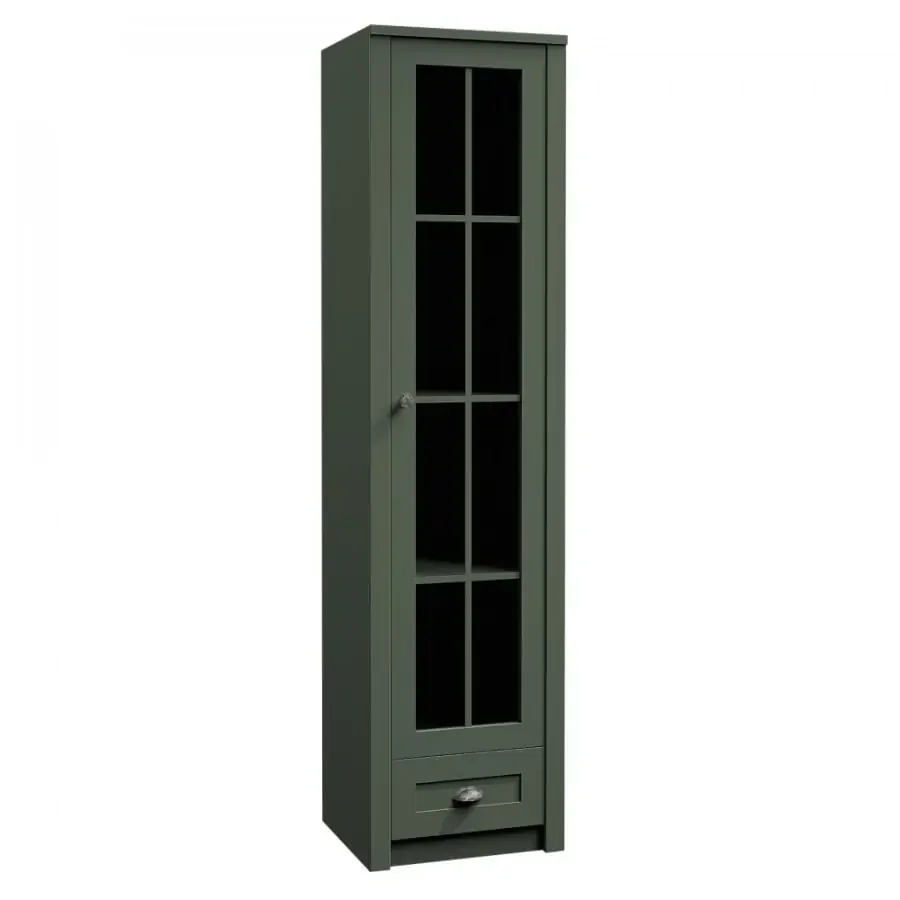 Elegantní vitrína PROVANCE W1S v zelené barvě je praktickým kouskem pro obývací pokoj, ale bez problémů ji využijete i v jídelně, ložnici či pracovně. Je vyrobena z laminovaných dřevotřískových desek a nabízí prosklenou část spolu s jedním šuplíkem a policemi za dvířky, které poskytnou dostatek úložného prostoru. Barevné provedení působí svěže a nadčasově; korpus má tloušťku 15 mm a horní deska 22 mm. Dodávána je v demontu, takže ji jednoduše smontujete podle návodu. Díky praktickým přihrádkám a průhlednému čelnímu prostoru je ideální doplněk pro organizovaný a stylový interiér.
