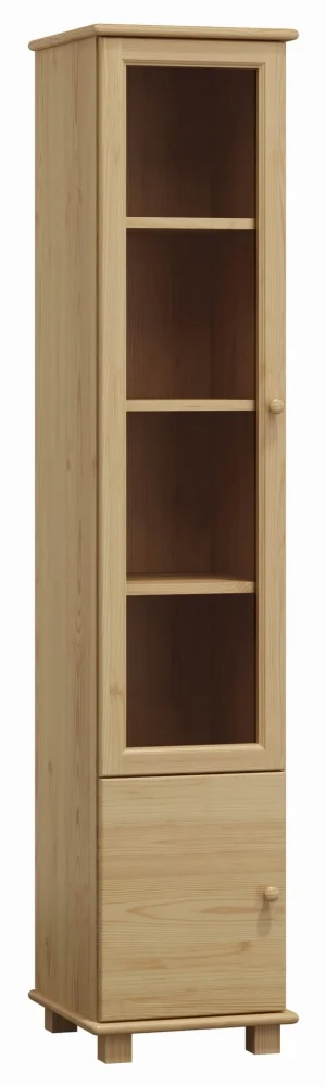 Policová vitrína vyrobená z masivního borového dřeva kombinuje pevnost s přírodním vzhledem. Rozměry udávají výšku 190 cm, šířku 40 cm a hloubku 42 cm, takže nabídne dostatek místa pro vystavení i ukládání předmětů.