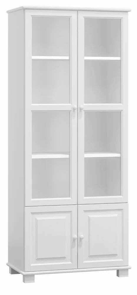 Vitrína SAPITWA 4 – masiv borovice, bílé moření Regály
