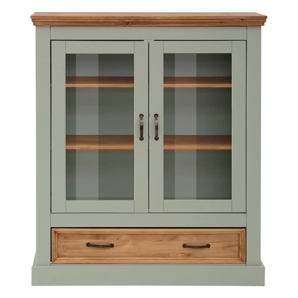 Vitrína Selma z borovicového dřeva, světle zelená 100x120 cm Vitríny
