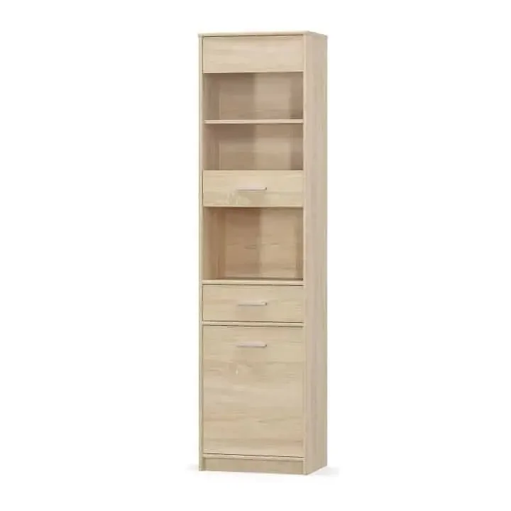 Vitrína Teyo kombinuje čistý a stylový design s lehce světlým tónem, který se hodí i do tmavějších místností a vytváří příjemný kontrast. Vyrobena je z laminované DTD s povrchovou úpravou dub sonoma, což garantuje odolnost a snadnou údržbu. Dodává se v demontu, což usnadňuje dopravu i montáž. Ideální je pro vystavení dekorací, skleněných předmětů a drobných doplňků, čímž podtrhne eleganci vašeho prostoru. Díky světlému odéru se snadno sladí s různými interiérovými styly a prostor opticky prosvětlí.