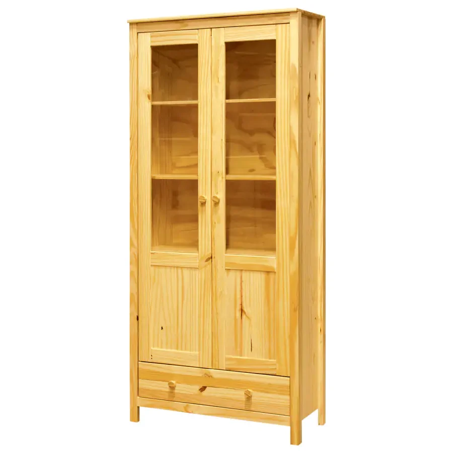 Vitrína Torino je vyrobená z masivní borovice a povrch je ošetřen bezbarvým lakem, který chrání dřevo a zároveň zachovává jeho přirozenou kresbu. Horní část s dveřmi nabízí prostor pro uspořádání uložených věcí díky vestavěným poličkám, zatímco spodní část skrývá praktickou zásuvku s kovovými pojezdy. Dodává se v demontovaném stavu a součástí balení jsou veškeré spojovací prvky pro rychlou montáž. Díky elegantnímu designu a přírodním odstínům borovice se vitrína hodí do obývacího pokoje, jídelny i pracovny a poskytuje dostatek úložného prostoru bez zbytečného překrytí prostoru.