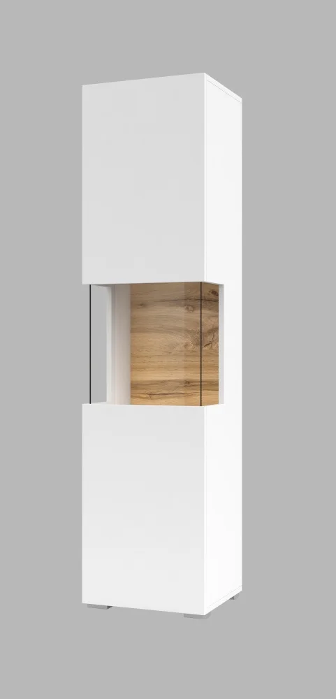 Vitrína UDREN 1D – bílá/dub wotan Regály