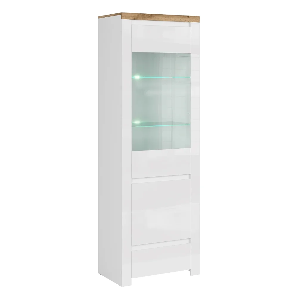 Vitrína VENUSTA 1D1W1S, bílý lesk/dub wotan Regály