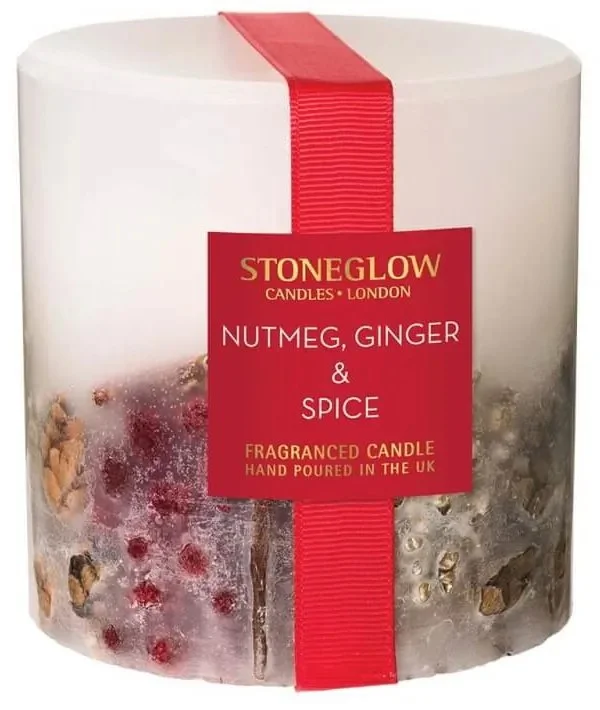 Luxusní vonná svíčka s okouzlující vůní muškátového oříšku, zázvoru a koření přinese do vašeho domova teplou vánoční atmosféru. Uvnitř svíčky jsou zakomponovány kousky sušeného koření a dřeva, které nejenže vytvářejí krásný dekorativní vzhled, ale také zvyšují intenzitu vůně. Aromatická kombinace muškátového oříšku a jiskřivého zázvoru se harmonicky snoubí s teplými tóny cedru a santalového dřeva, čímž vzniká elegantní a sofistikovaný aroma zážitek.