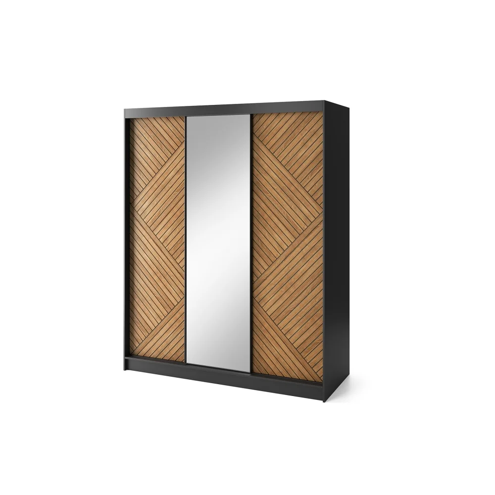 WILKE III: šatní skříň se zrcadlem, dub caramel/černý mat Skříně a skřínky