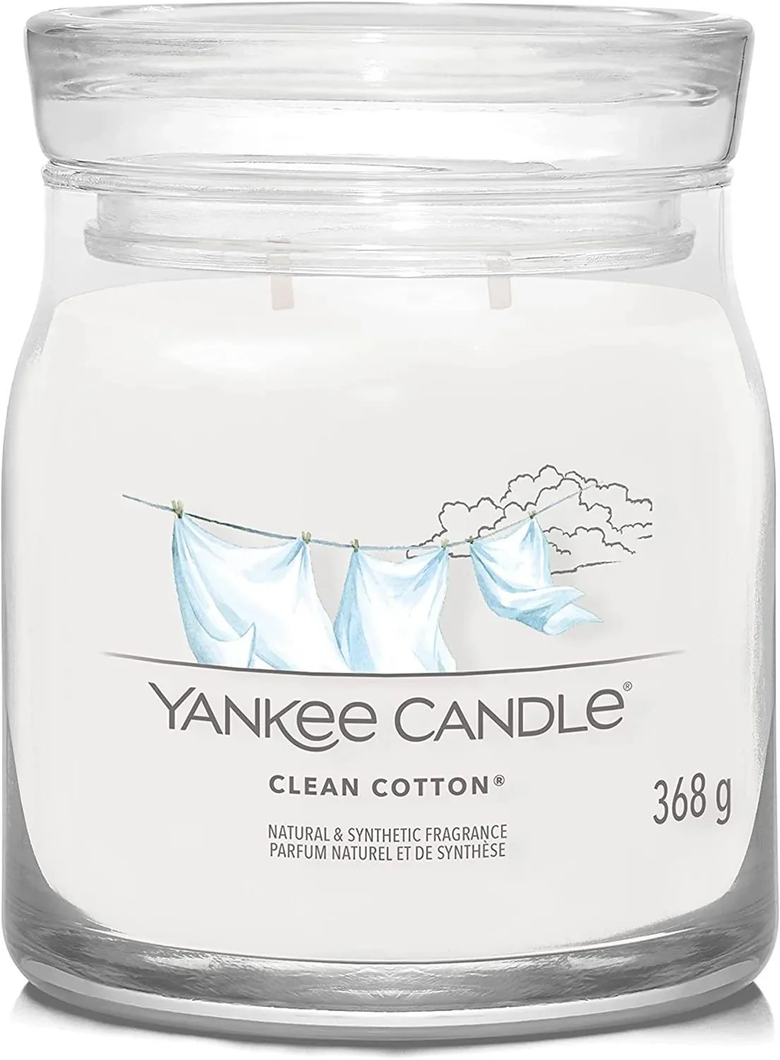 Objevte svěží a čistou vůni, která vás přenese na ranní procházku po pláži za úsvitu nebo při západu slunce. Svíčka Yankee Candle Signature ve střední velikosti s vůní Clean Cotton kombinuje jemné tóny čerstvé bavlny, zelených listů, citrusových akcentů a květinových nuancí, jež evokují pocit čistoty a pohody.