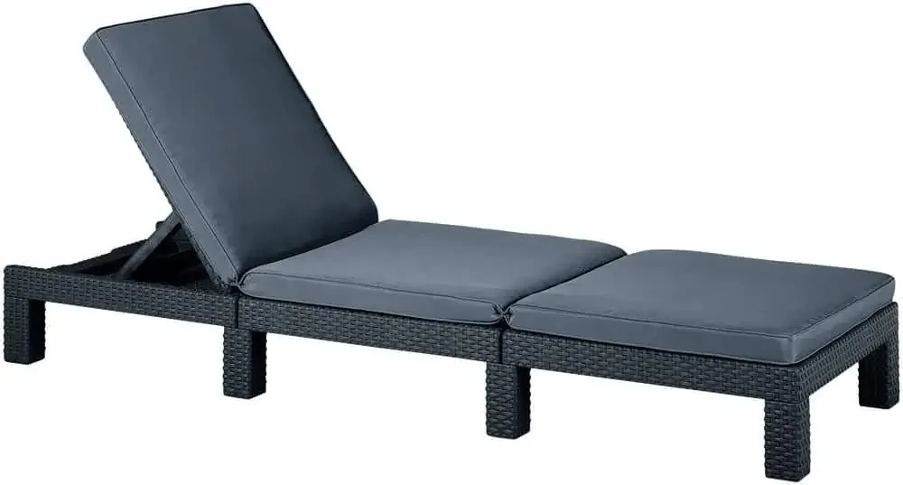 Lehátko DAYTONA od značky Keter je vyrobeno z lisovaného plastu, který napodobuje ratanu, a dodává se se šedým polstrováním. Materiál nabízí snadnou údržbu, odolnost a dlouhou životnost, díky čemuž je ideální volbou pro zahradu, terasu i k bazénu. Je vhodné pro zahradu, terasu či k bazénu. Rozměry: výška sedu 22 cm, maximální výška opěradla 94 cm, šířka 65 cm a délka 195 cm. Hmotnost 11,6 kg a nosnost 110 kg. Barva grafitová se šedohnědým polstrováním. Rozměr balení 70x70x40 cm, balení z kartonu. Navíc lehátko nabízí pohodlné odpočinkové posezení na slunci a díky své barevné kombinaci se snadno sladí s dalším zahradním nábytkem.