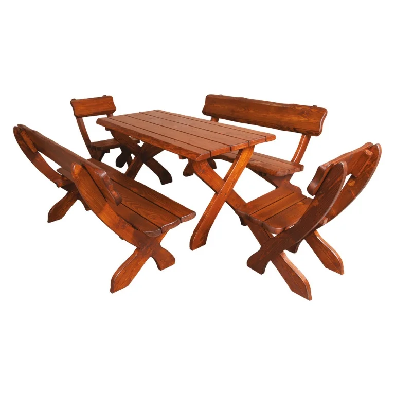 Zahradní stůl ECIRHOZA je vyroben z masivního smrku a v dekoru dubu, který dodává teplý, přírodní vzhled. Rozměry stolku jsou 150 × 72 × 65 cm, takže poskytne pohodlné místo pro rodinné posezení na zahradě. Cena platí výhradně za samotný stůl; k dispozici je také lavice a židle jako součást příslušenství. Dodáváno v demontu, díky čemuž je doprava i skladování snadné. Tento stůl kombinuje pevnost dřeva se stylovým vzhledem a výborně doplní venkovní set pro každodenní i slavnostní příležitosti.