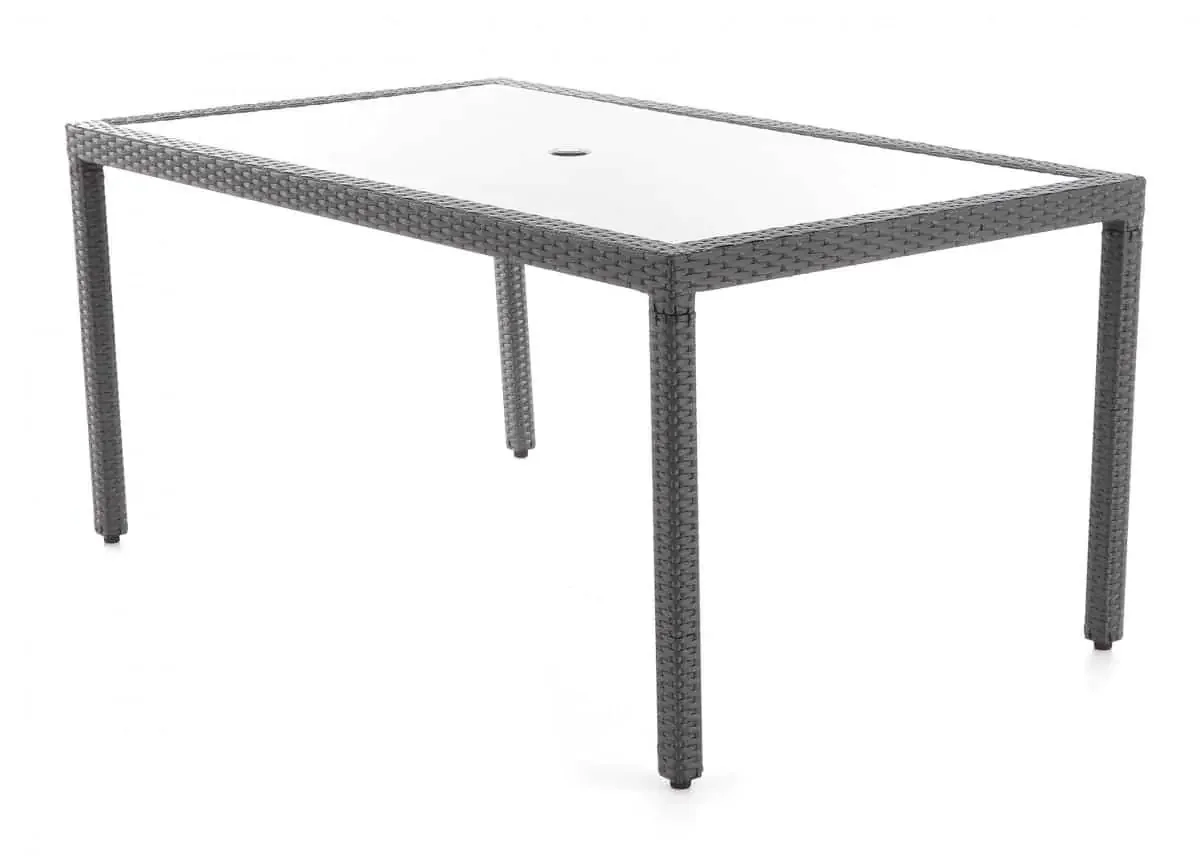 Konstrukce stolu VALENCIA je vyrobena z hliníkových profilů a povrchově chráněna komaxitovou úpravou, která zvyšuje odolnost vůči povětrnostním vlivům a prodlužuje životnost i venku. Stolová deska je z tvrzeného skla a nohy jsou elegantně opletené umělým ratanem. Rozměry: 150 × 90 × 73 cm. Umělý ratan je moderní materiál, který vyniká dlouhou životností a extrémní odolností vůči počasí, zároveň neabsorbuje tekutiny, což zamezuje nežádoucím promoknutím oproti dřevěnému nábytku. Tento stůl je vhodný pro zahrady, terasy i pergoly a díky svému provedení nabízí nejen styl, ale i snadnou údržbu a stabilitu.