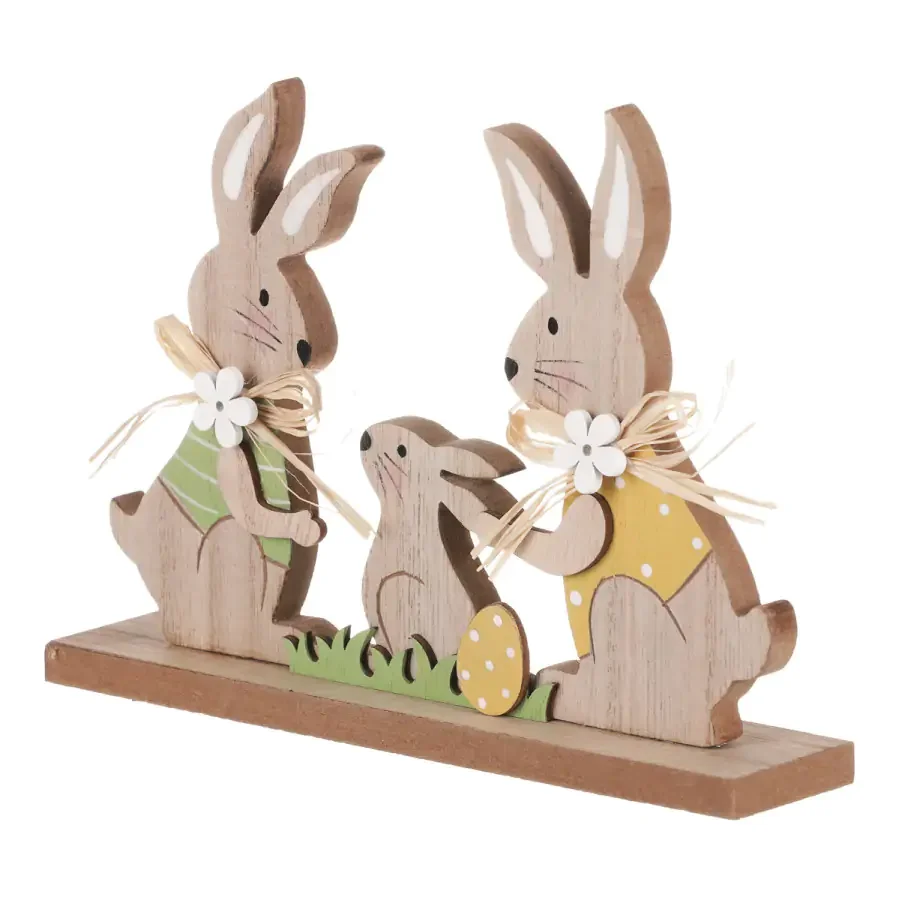 Velikonoce se rychle blíží a hledáte dekoraci, která oživí váš domov a zároveň navodí veselou jarní atmosféru? dřevěná stojací dekorace KLA716-S, ztvárněná jako rodinka zajíčků, představuje stylový prvek pro velikonoční výzdobu i běžné aranžování prostoru. Díky kompaktnímu provedení ji snadno umístíte na polici, stůl či parapet a její přírodní vzhled se hodí k pastelovým dekoracím a květinám. Tato dekorace je pevná a dlouho vydrží, což z ní dělá praktický doplněk do každého interiéru; navíc ji lze kombinovat s dalšími motivy a vytvářet tak originální jarní scénu. Pro ještě lepší efekt ji doplňte kraslicemi, zajímavou dekorací a svíčkami a vytvořte působivou velikonoční výzdobu, která potěší rodinu i návštěvy.