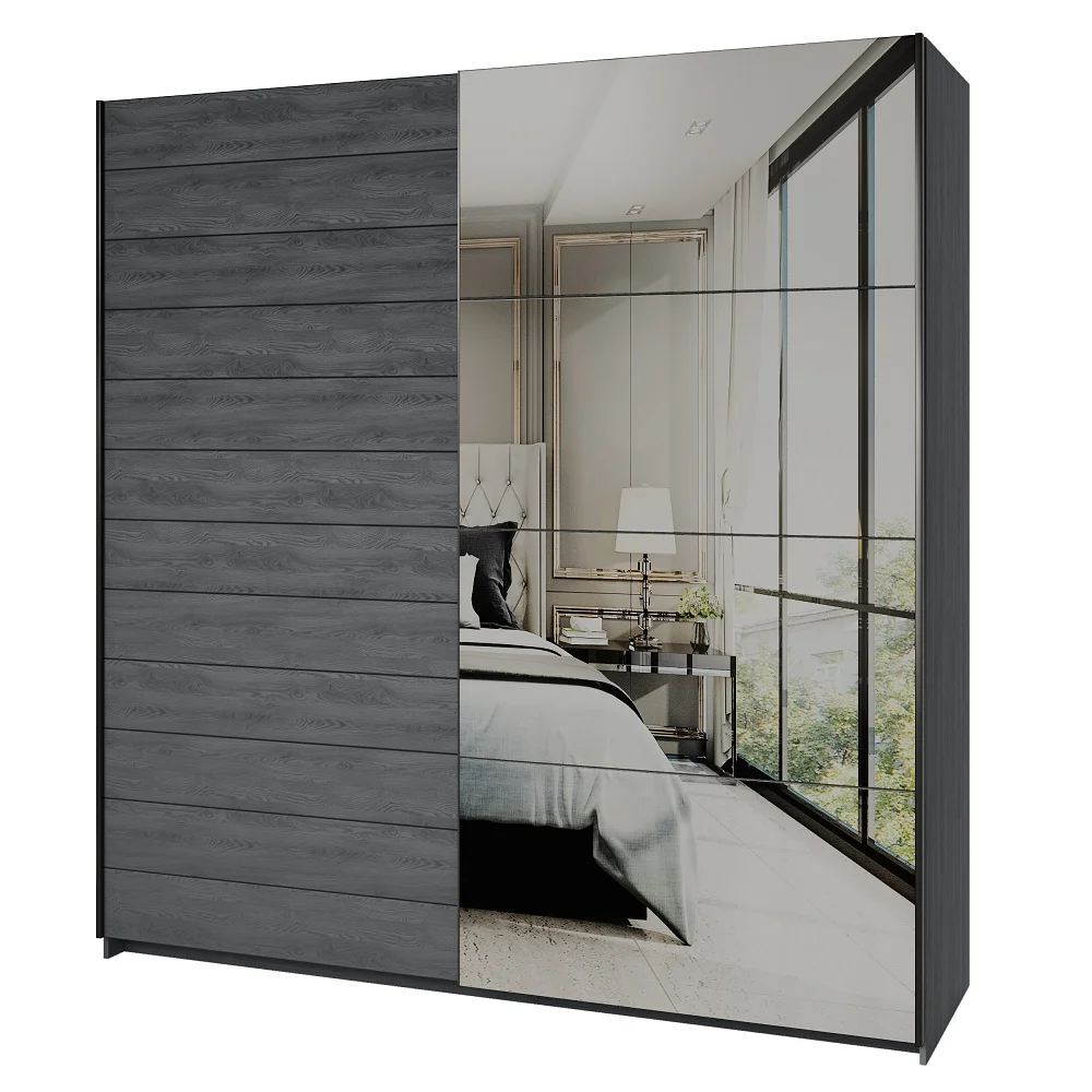 ZANDER šatní skříň se zrcadlem 200 cm – dub carbon Skříně a skřínky