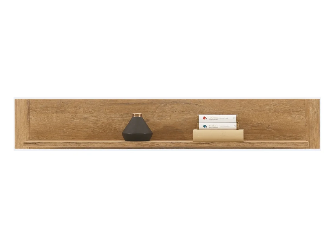 Závěsná polička KITONGO v odstínu dub granson nabízí kompaktní rozměry 149 x 23 x 24,5 cm a moderní vzhled pro každý interiér. Je vyrobena z lamina s MDF ABS hranami, což zajišťuje pevnost a dlouhou životnost.