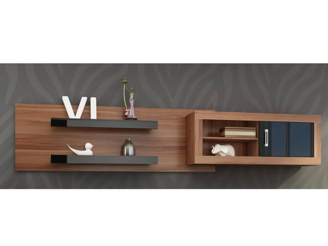Moderní závěsná skříňka GOUDINI kombinuje odstíny švestky wallis s lesklým černým povrchem a odolným laminem o tloušťce 16 mm. Rozměry uváděné jako šířka 240/260/270 cm, výška 58 cm a hloubka 34 cm umožňují komfortní uspořádání v různých prostorách.
