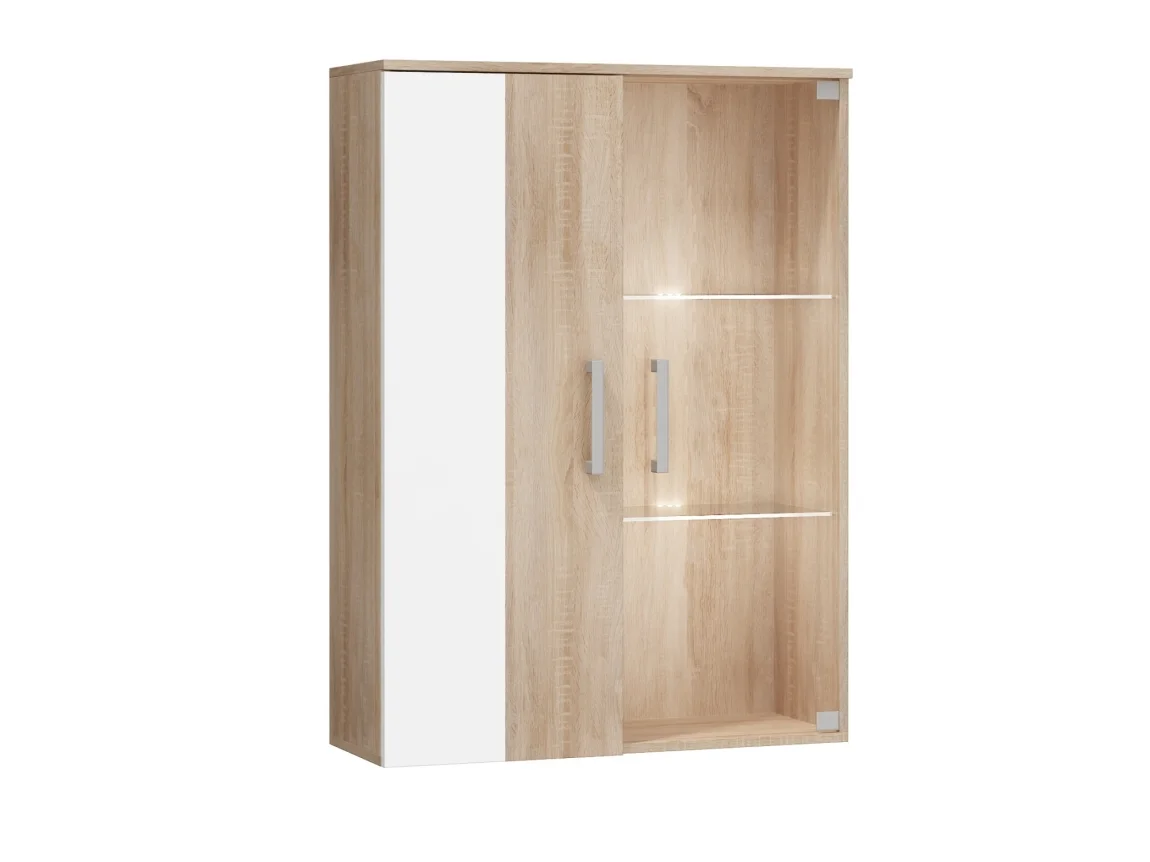 Závěsná skříňka MANGONA spojuje dub sonoma s bílým leskem a vytváří moderní, nadčasový vzhled do každého prostoru. Lamino 16 mm zajišťuje pevnou konstrukci a dlouhou životnost. Díky kombinaci dřevěného dekoru a světlého lesku opticky rozjasní prostor a snadno se sladí se všemi styly interiéru.