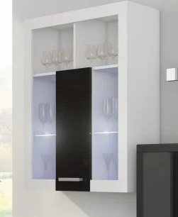 Závěsná skříňka MOLTENO v provedení bílo-černý lesk kombinuje moderní vzhled s praktickým úložným prostorem. Vyrobena je z lamina o tloušťce 16 mm, díky čemuž je odolná a snadno se udržuje.