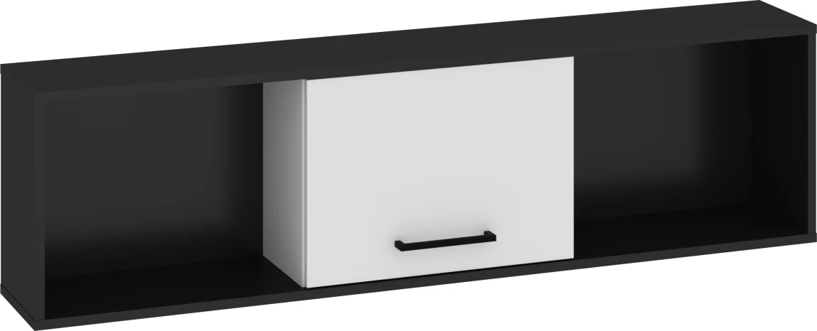 Moderní závěsná skříňka s dvířky v černobílém lesku dodá každé kuchyni či koupelně elegantní vzhled. Barva kombinuje černý lesk s bílými plochami a tmavé úchytky vytvářejí jemný kontrast.