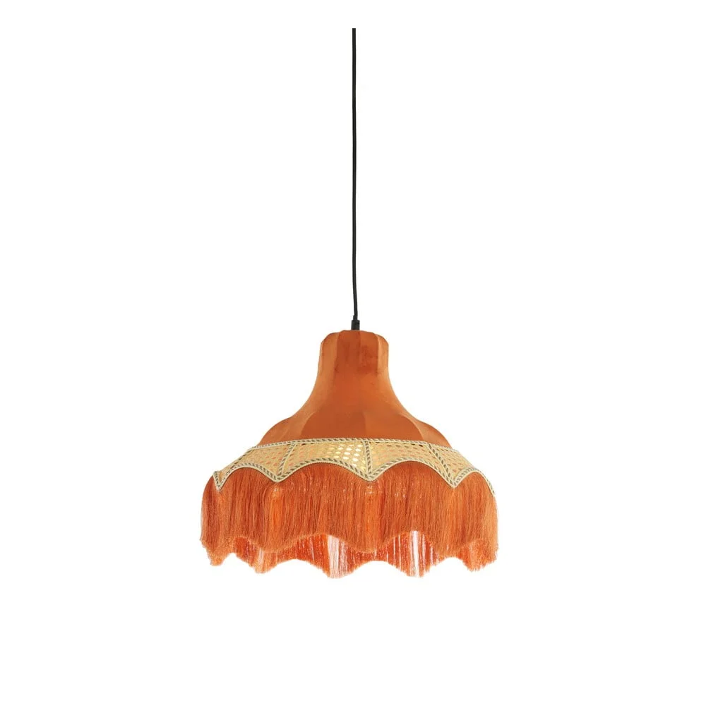Objevte stylové závěsné osvětlení Mizia s výrazným oranžovým odstínem, které dokonale ozvláštní váš interiér. Jeho velké textilní stínidlo o průměru 40 cm poskytuje příjemné a rovnoměrné osvětlení, ideální pro obývací pokoje nebo jídelny.