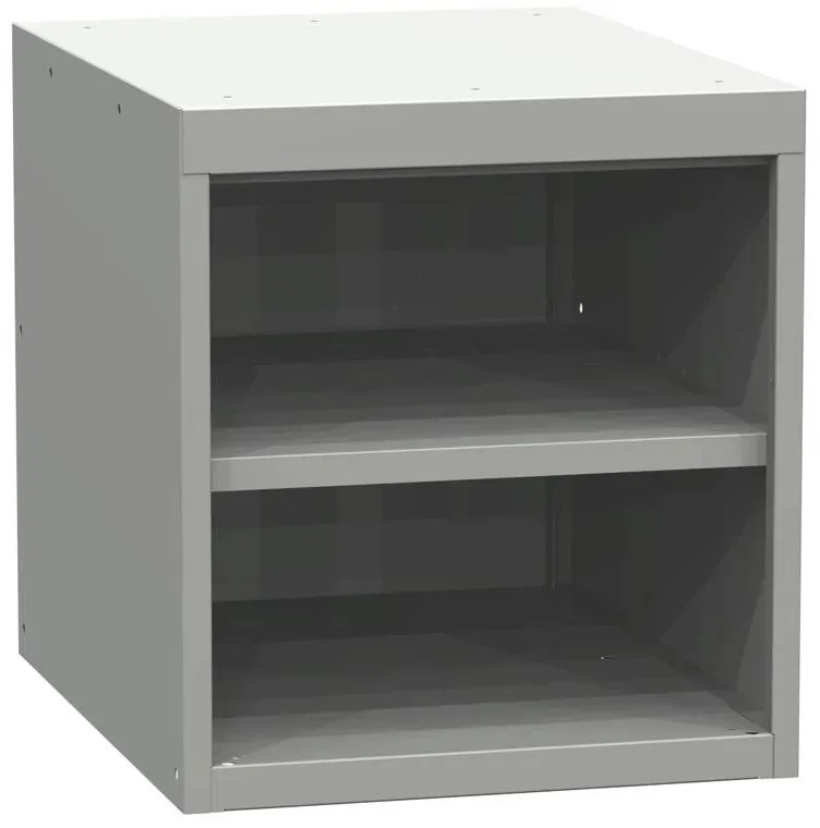 Skříňka disponuje nosností polic až 40 kg a obsahuje výsuvné zásuvky na kuličkových ložiscích, jež se plně vysouvají pro pohodlný přístup. Bezpečnost zajišťuje centrální zámek s dvěma klíči. Povrch je opatřen odolnou práškovou vrstvou v moderní šedé barvě RAL 7035, zatímco zásuvky jsou v atraktivní modré barvě RAL 5012. Tento závěsný box je skvělou volbou pro efektivní skladování a rychlý přístup k nářadí, ideální do dílen i na stavby.